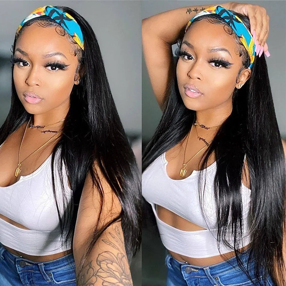 Perruque bandeau en cheveux humains raides, perruques en cheveux humains péruviens entièrement fabriquées à la machine pour femmes noires, faciles à porter, 180 %
