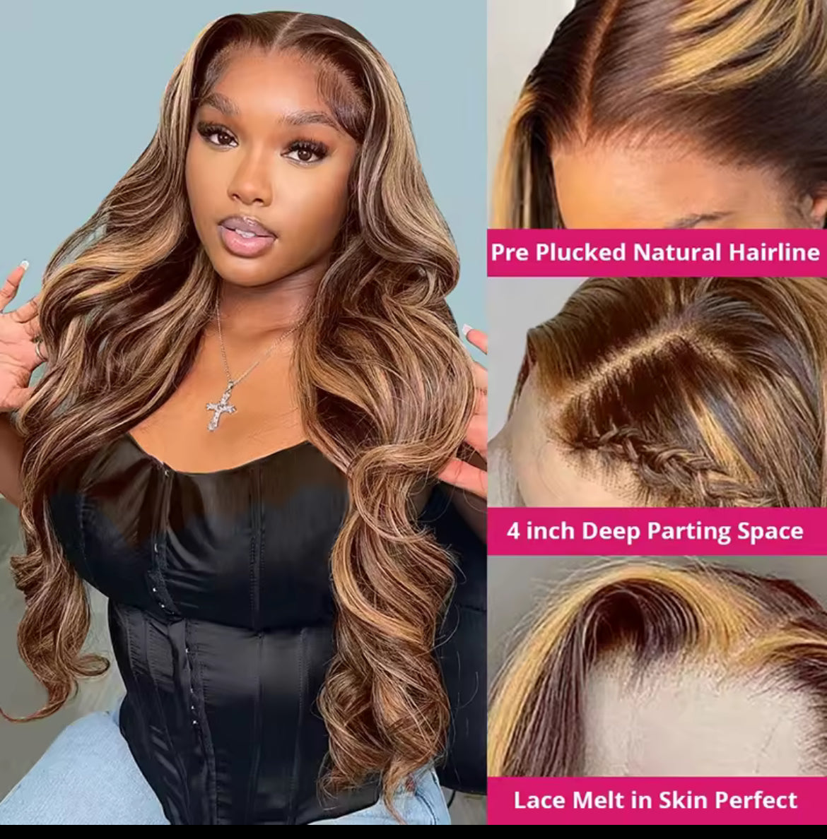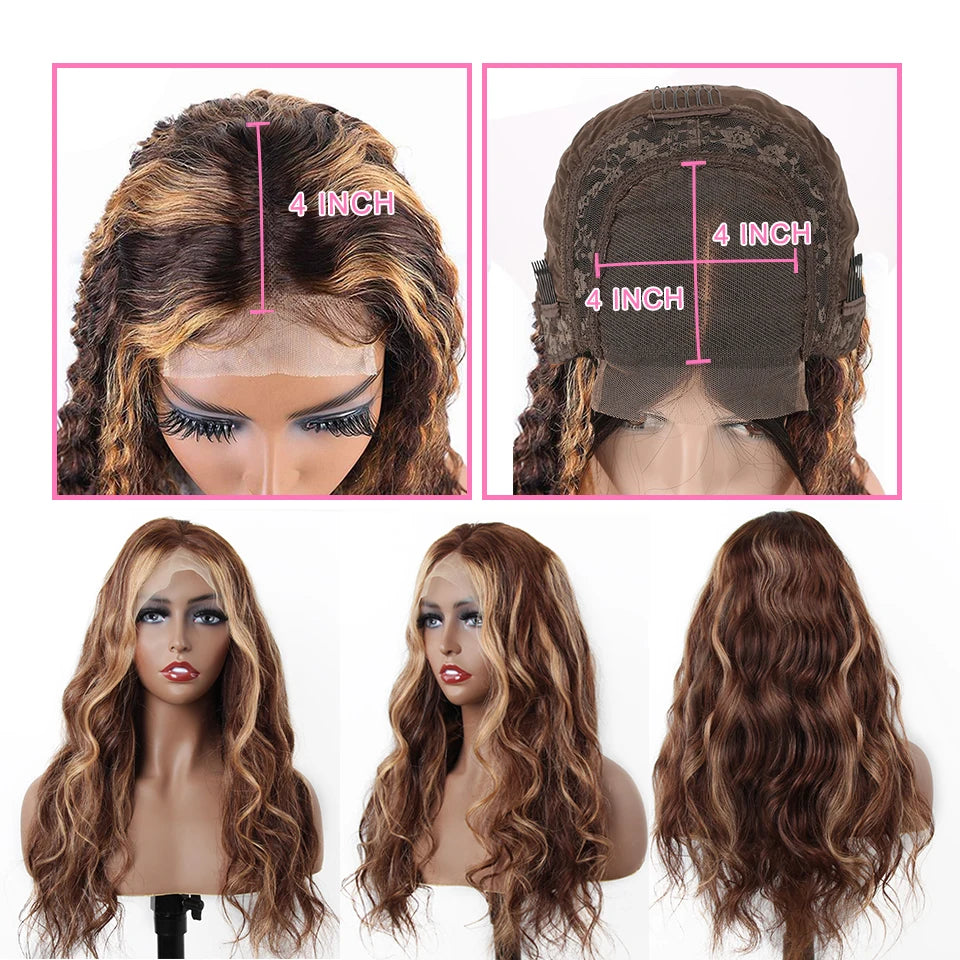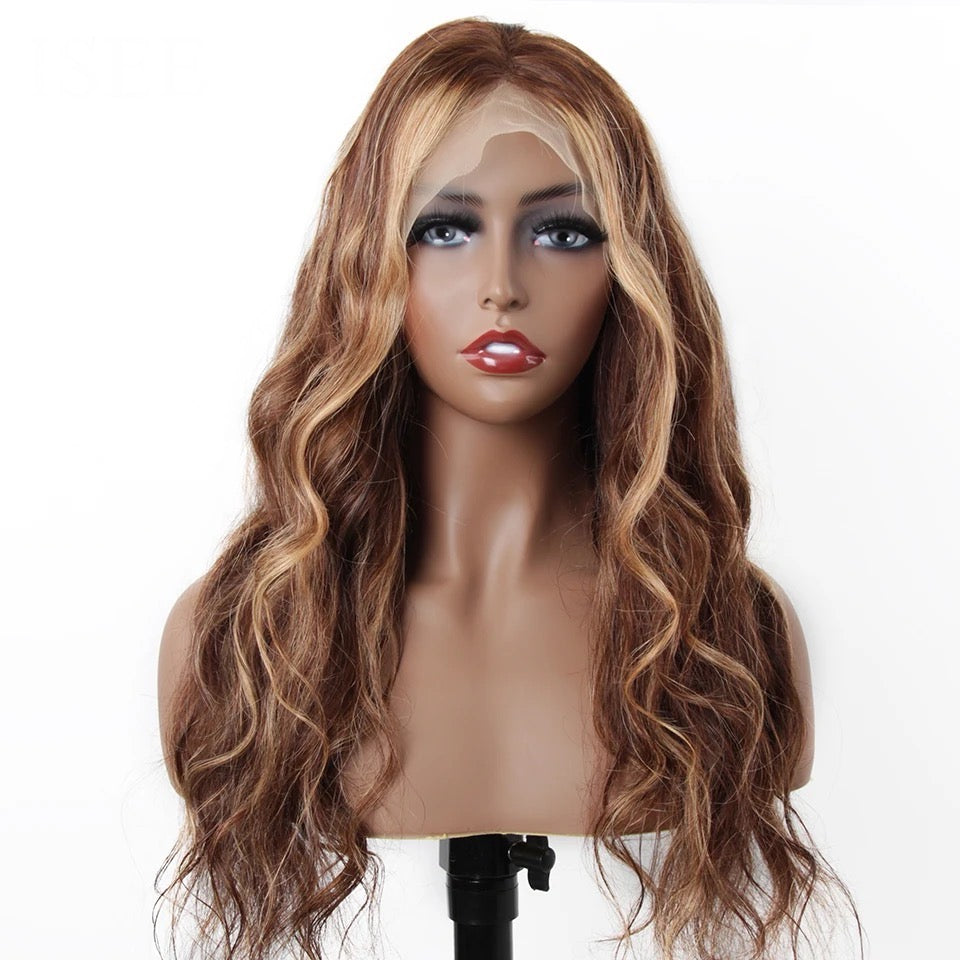 Perruque péruvienne ondulée avec reflets ombrés, cheveux naturels, pour femmes, avec fermeture en dentelle, 13x4