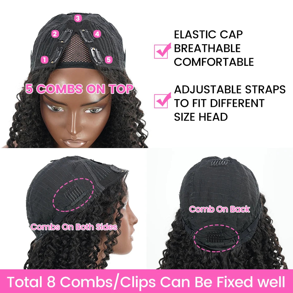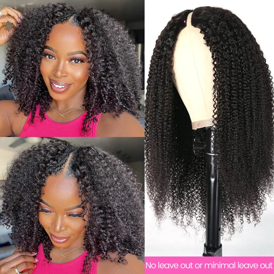 V PART Perruques en cheveux humains pour femmes, perruques bouclées avec raie latérale sans perte, perruques mongoles crépues et bouclées