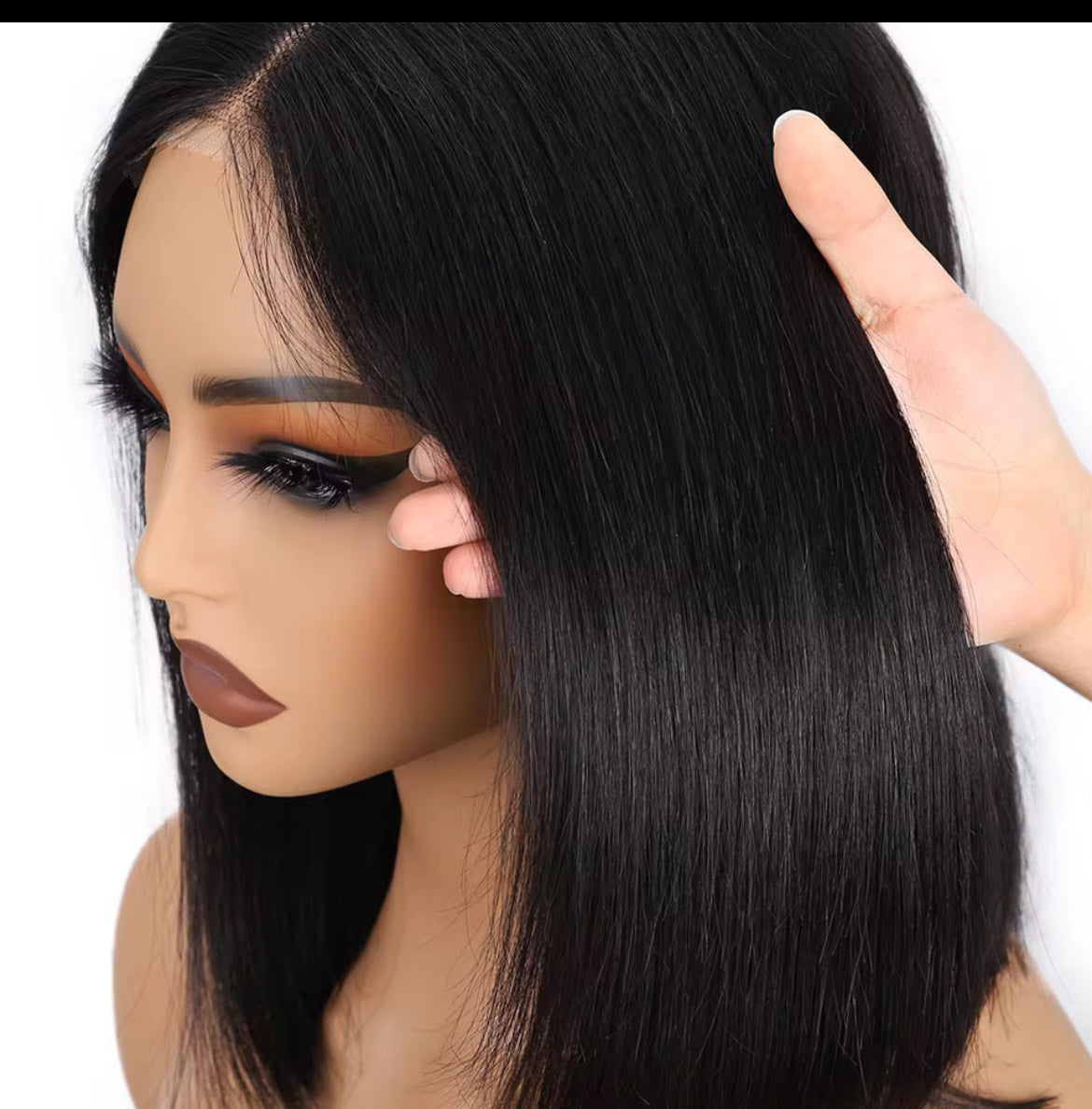 Perruques Bob en cheveux humains pré-épilés, lisses, transparentes, 18 x 13 cm, sans colle, prêtes à porter