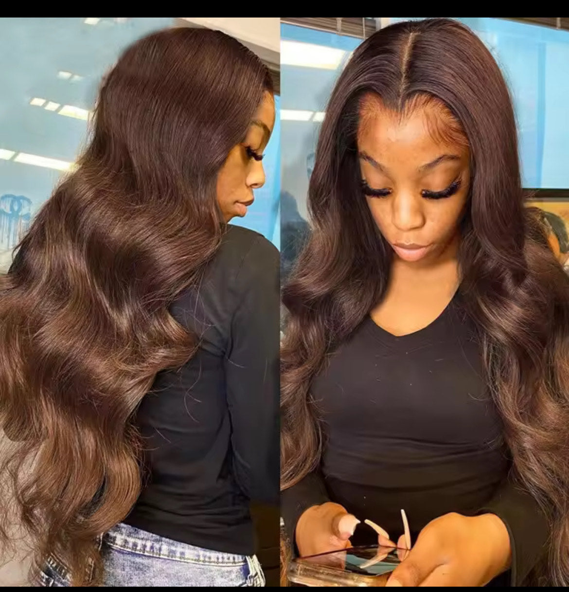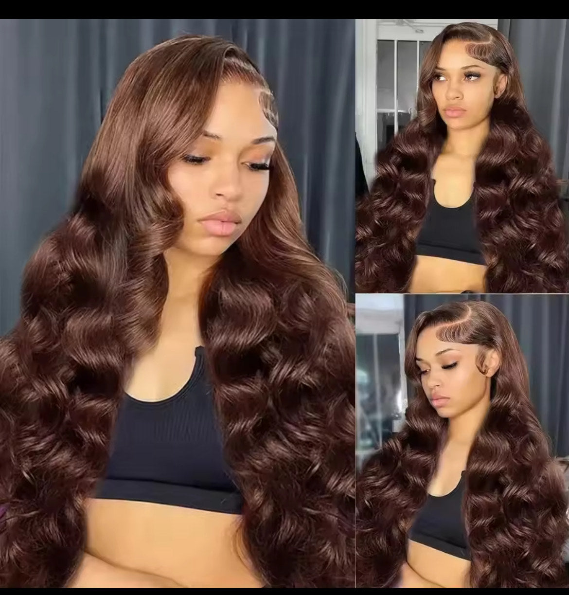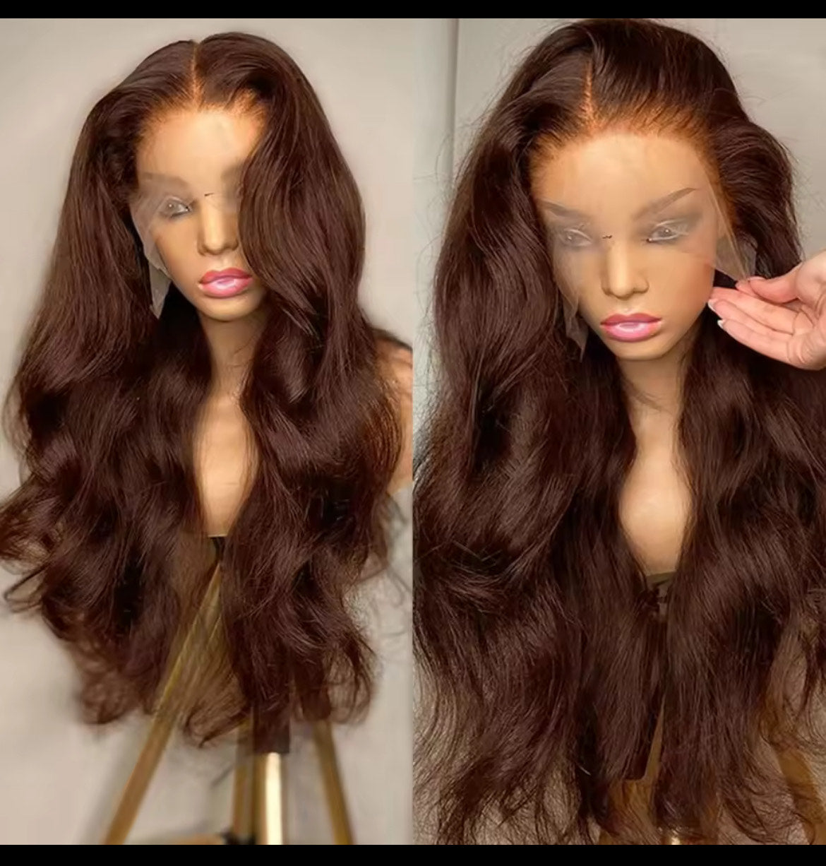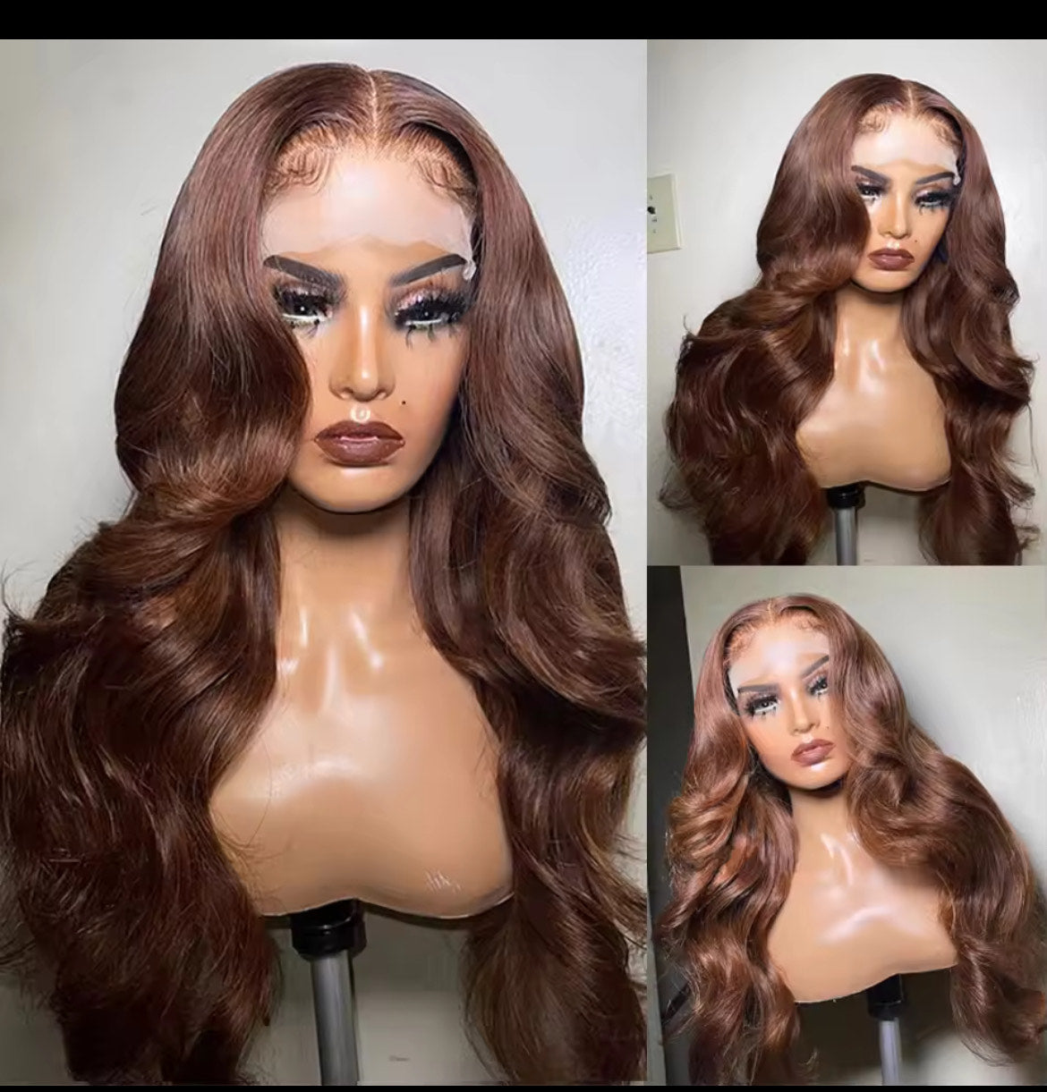 Perruque péruvienne ondulée marron chocolat avec dentelle frontale, cheveux humains colorés, fermeture 4x4, 76 cm, pour femmes