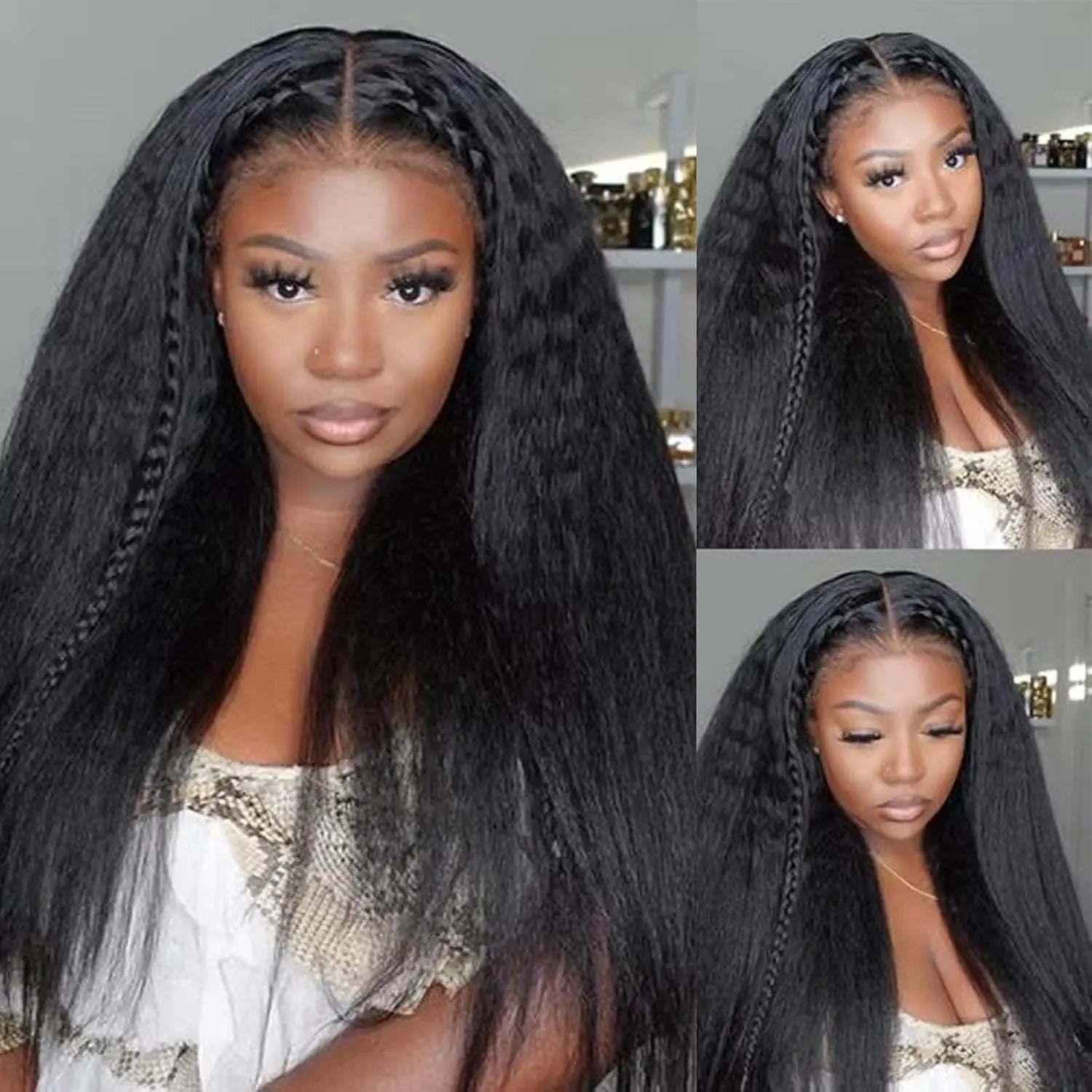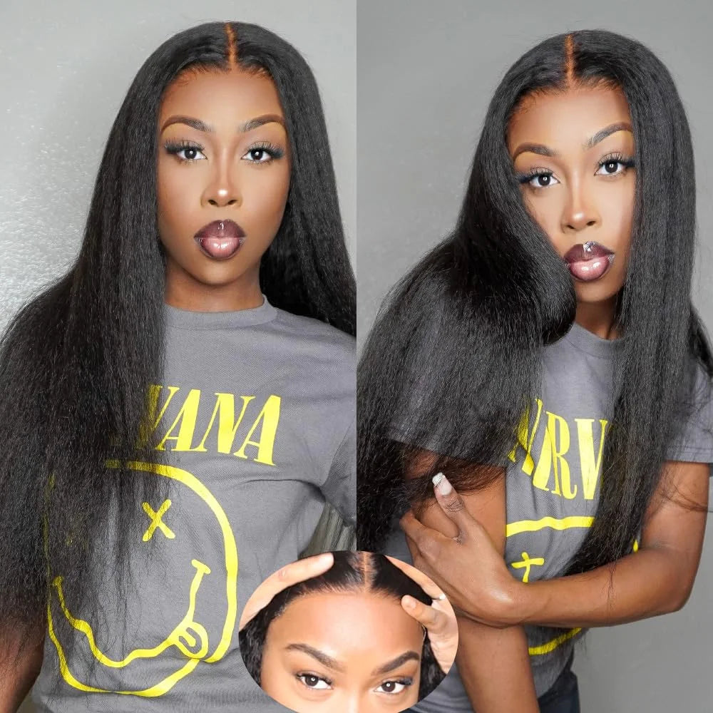 Perruques crépues lisses sans colle pour femmes, prêtes à porter et à emporter, densité 180, perruque avec fermeture en dentelle 4x4, perruque en cheveux humains prédécoupés en dentelle naturelle