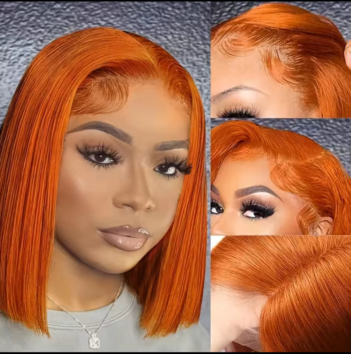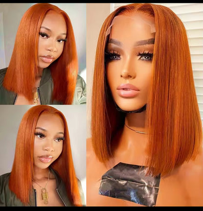 Perruque Bob Lace Frontal Wig 100%, naturelle cheveux humains ,couleur Orange 13X4 vietnamien , pour femmes