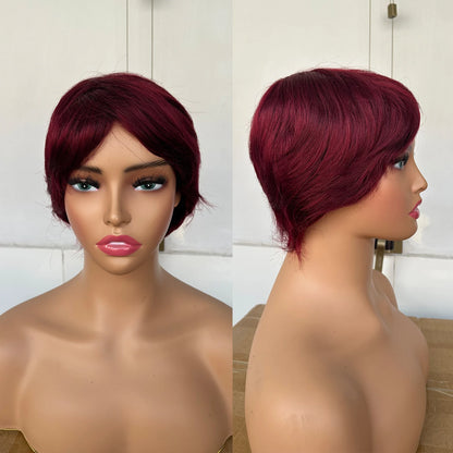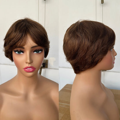 Perruques courtes en cheveux humains, coupe Pixie, perruque brésilienne droite pour femmes noires, perruques entièrement fabriquées à la machine avec frange